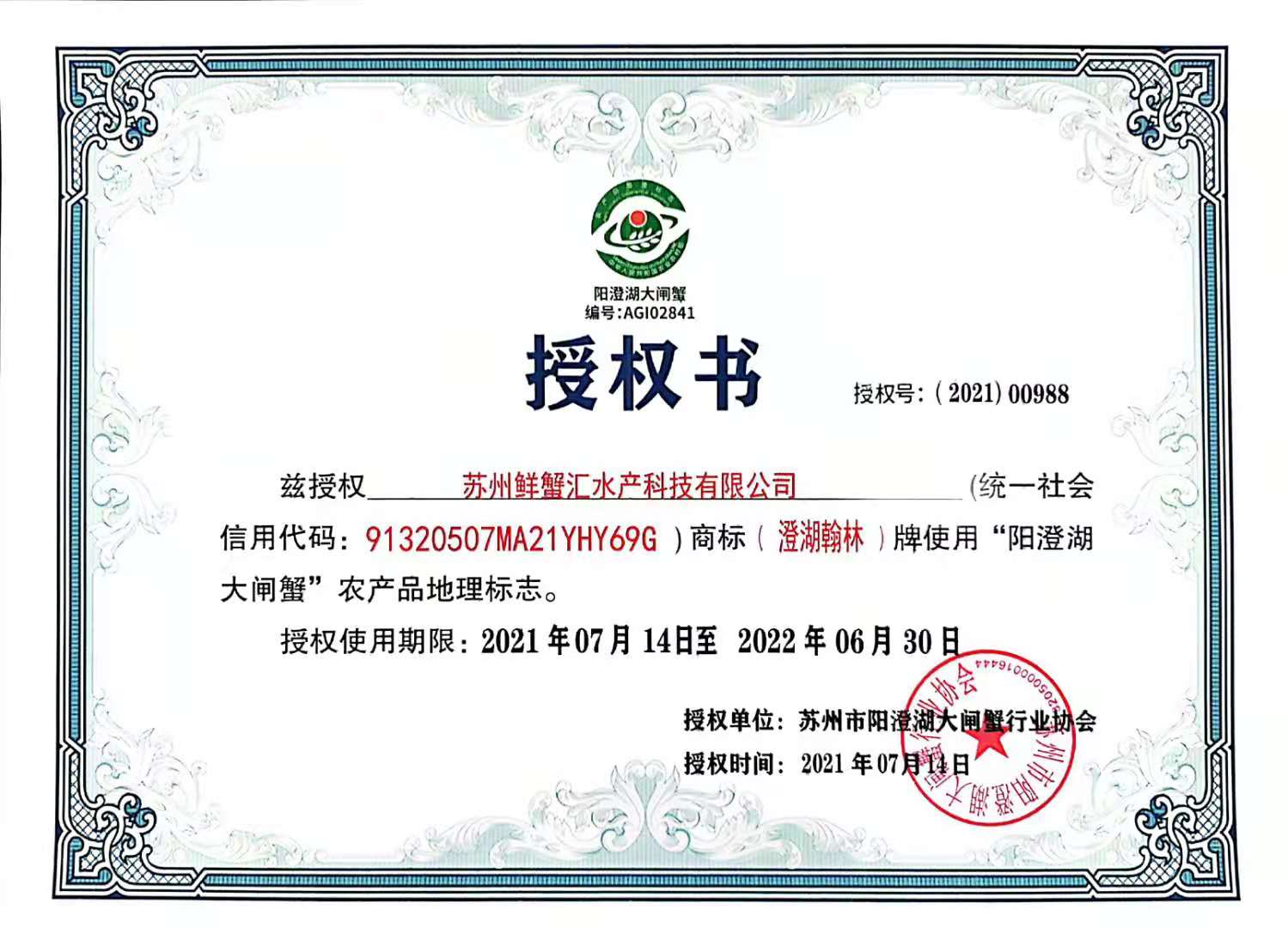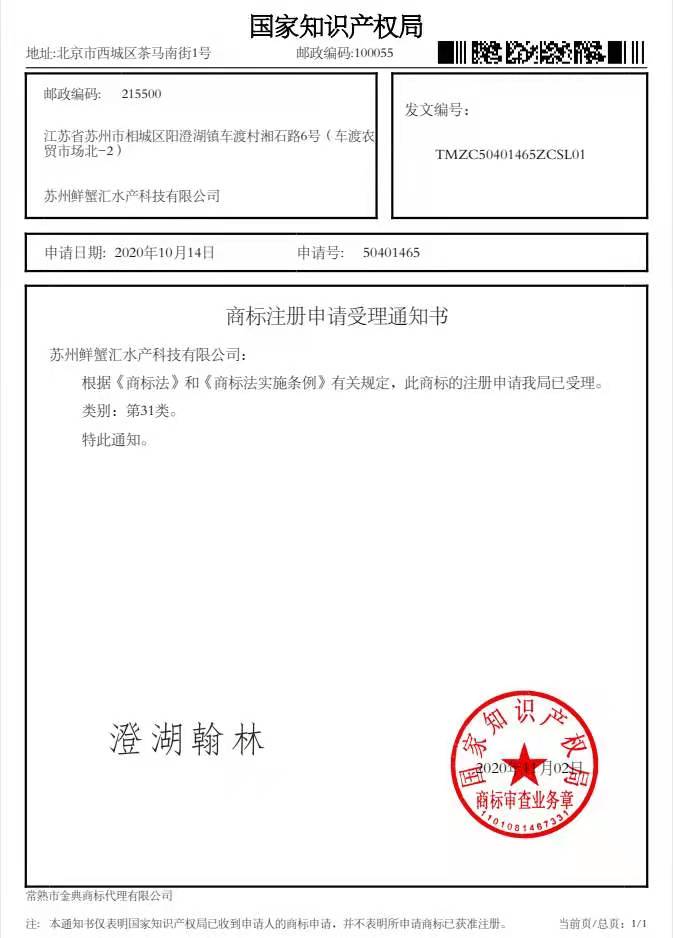 苏州鲜蟹汇水产科技有限公司成立于2020年3月,目前拥有46名养殖户社员,其中4名技术人员,规模养殖面积960亩。生产的阳澄湖大闸蟹通过了绿色食品及无公害产品认证,